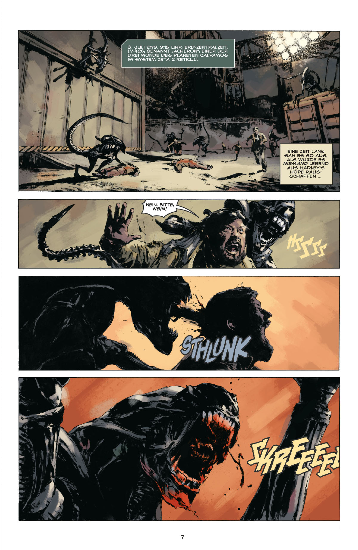 Die Geschichte selbst beginnt zunächst sehr Action-lastig und geht eher in die Richtung Survival-Horror, driftet aber ungefähr ab der Hälfte des Bandes in das Genre Mystery, was der Handlung aber sehr entgegenkommt. Es wird einiges in Form eines „Logbuchs“ von Russel erklärt, während das Geschehen drumherum reich bebildert ist, damit es nicht allzu trocken daherkommt. Neben den Erklärungen der Umstände kommen natürlich die Xenomorphs nicht zu kurz und präsentieren sich sogar mit einer neuen Gattung, die eine Verschmelzung zwischen Mensch und Alien darstellt. Vor allem solche Einfälle geben der Reihe die Daseinsberechtigung, die sie ohne jeden Zweifel verdient hat.