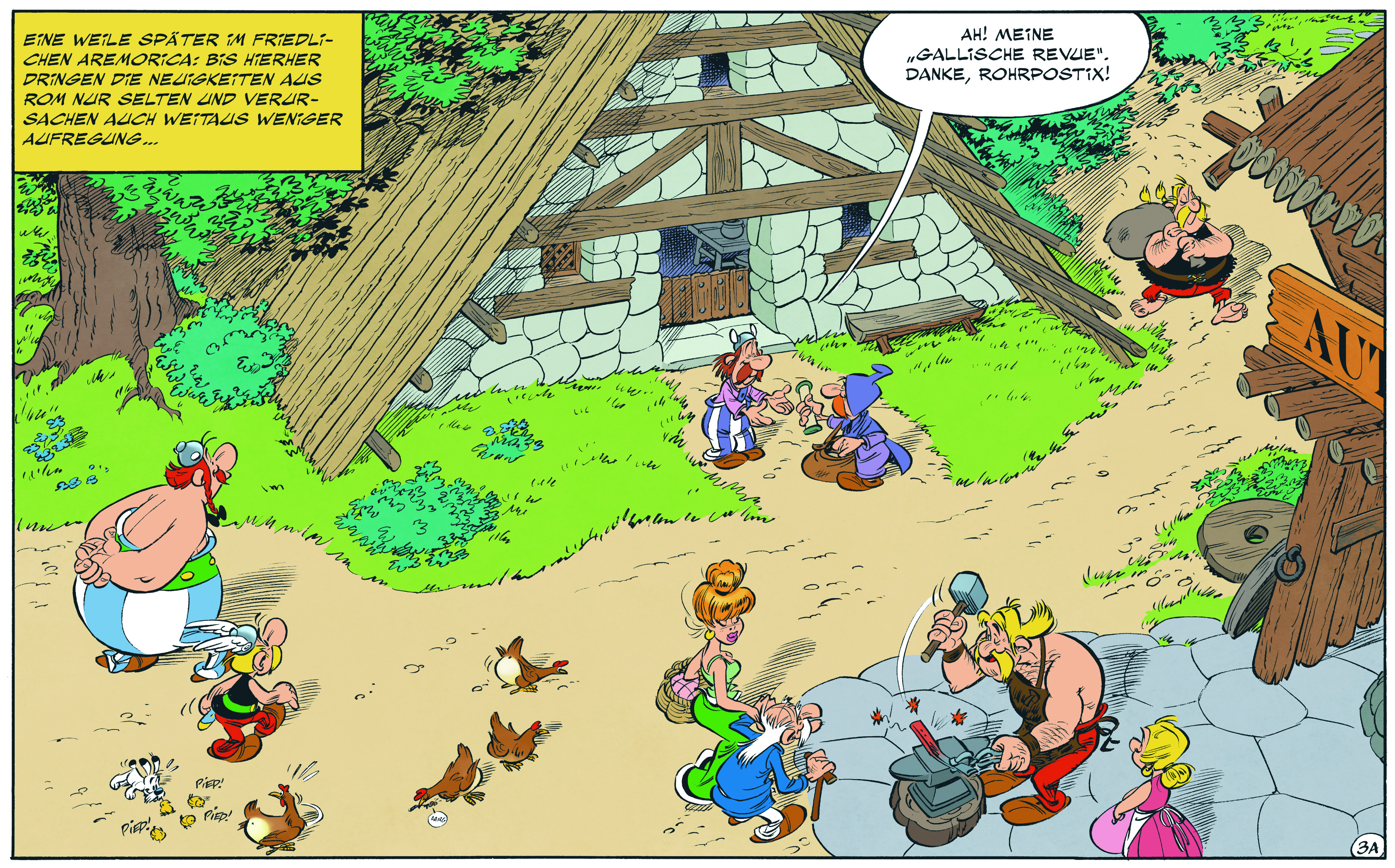 Man muss zwar sagen, dass man durchaus merkt, dass neue Künstler am Werk sind, aber das wohlige Gefühl ein Original in den Händen zu halten verblasst nicht. Vor allem der Raum, der so gut wie allen bekannten Charakteren eingeräumt wird tut sein übriges und vermittelt das typische „Asterix“-Feeling, welches wir seit bestehen der Serie kennen und lieben. Trotzdem ist vor allem durch den Aufhänger der Story ein sehr deutlicher Bezug zum Zeitgeist zu spüren, der in der Form vermutlich nicht in Originalbesetzung gelungen wäre. Zum Beispiel wurden sehr deutliche Anspielungen auf soziale Netzwerke und die Whistleblower-Affären eingebaut und damit ein bemerkenswerter Spagat geschlagen, der Kinder und Erwachsene zwar gleichermaßen unterhält, dafür aber komplett unterschiedliche Verständnis-Ebenen bedient.