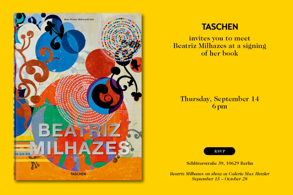 Es ist schon etwas länger her, seit ich eine Künstlerin als Gast eines TASCHEN-Flagshipstores ankündigen durfte. Doch nun ist es endlich soweit und ich freue mich euch mitzuteilen, dass die große brasilianische Künstlerin Beatriz Milhazes an diesem Donnerstag (14. September; Beginn 18 Uhr) ihr Buch im Berliner Store (Schlüterstr. 39, 10629 Berlin) des Verlags signieren wird!